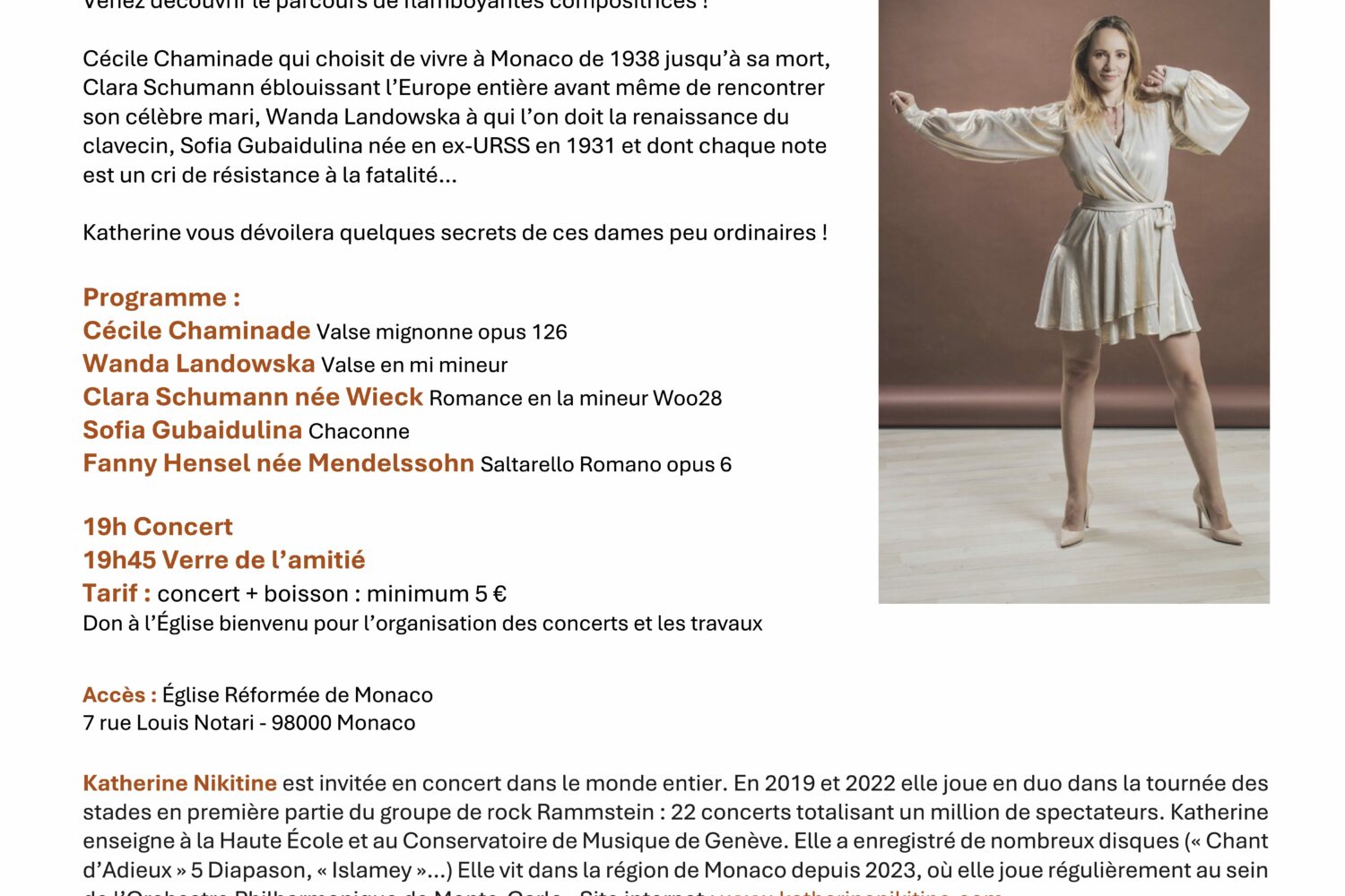 En l’église réformée de Monaco et au profit de celle-ci